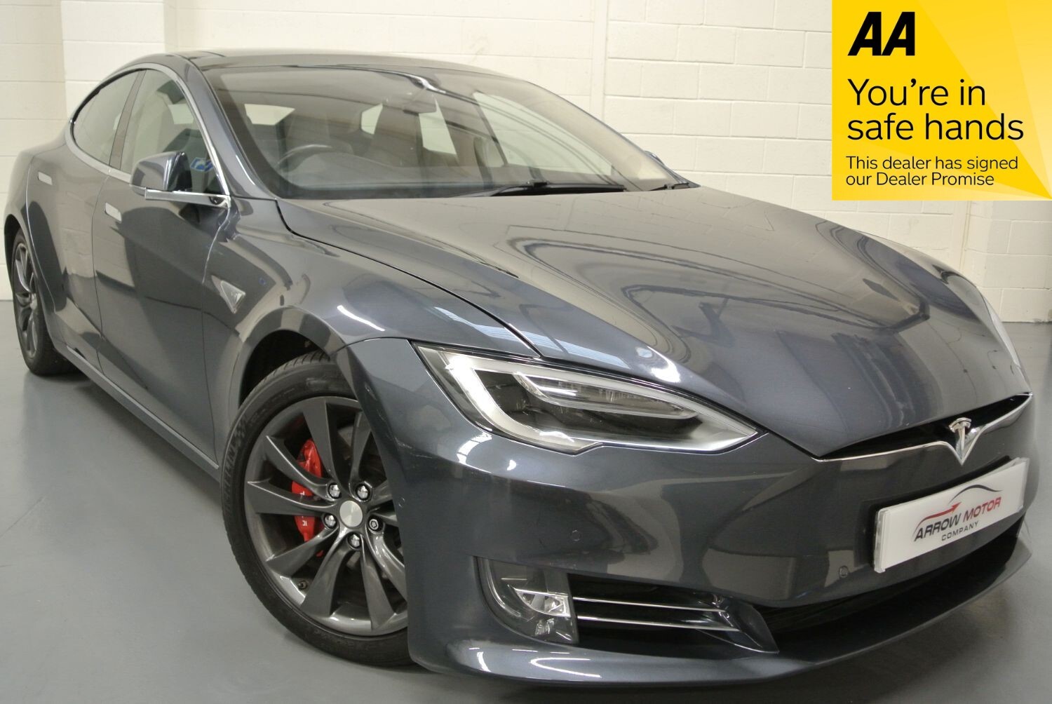 Arrow Motor Company are pleased to present this fantastic Tesla Model S 90D, finished in the stunning Midnight Silver Metallic Paintwork with contrasting Oyster Leather Interior. Equipped with a 90 kWh Lithium-Nickel Battery capable of producing a barnstorming 517 BHP, offering a 0-62 time of just 3.1 seconds whilst providing the most economical of drivers with a 285 mile range. This vehicle is also FREE Road Tax. This vehicle also benefits from the following list of impressive features: Satellite Navigation, Heated Front Seats, Bioweapon Defense Mode, Customisable Steering Mode (Comfort, Standard, Sport), Front & Rear Radar Style Parking Sensors with Inch Display, Customisable Acceleration Mode (Chill, Standard), 17’’ Tesla Home Screen, Full Sliding Panoramic Sunroof, Heated Steering Wheel, Bluetooth with Media Streaming, Obstacle Aware Acceleration, 19’’ Alloy Wheels, Regenerative Braking (Low, Standard), Automatic Emergency Braking, Audio System with AM/FM/DAB Radio, Automatic Air Conditioning with Dual Zone Climate Control, Speed Limit Warning, Collision Warning System, Smartphone Charging Station, Lane Departure Warning, Automatic LED Headlights, Slip Start Mode, Range Mode, Walk-Away Door Lock, Automatic/Manual Suspension Adjustment, Tesla Fast Charge Cable, Tesla Arcade, Wi-Fi Connectivity, Rain Sensing Windscreen Wipers, Electrically Folding Body Power Door Mirrors, Alloy & Leather Multi-Function Steering Wheel, Trip Computer, Electric Boot Closing, USB 3.0 Connectivity and Much More…